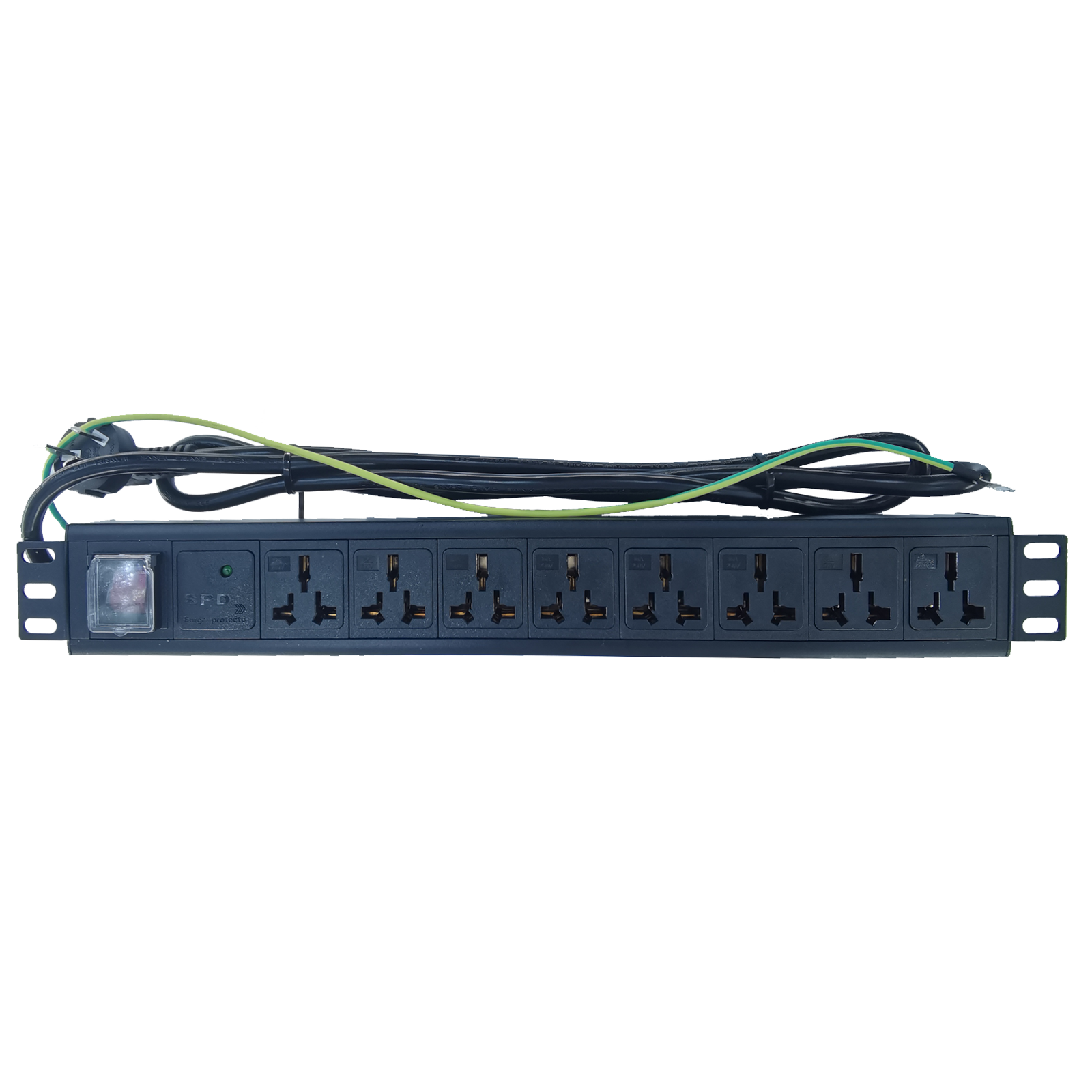 產品參數:代防雷功能,通流容量10KA,額定電流10A,工作電壓220V,電壓保護水平≤0.9KV,1.5U 8位16A新國標,2.5平方電源線2米10A國標插頭,產品系列:新國標系列,插座制式:GB/T1002-2008(16A)新國標標準輸出,輸出單元:8位10A新國標,供電輸入方式:左端輸入,安裝支架方式:水平安裝,電纜線插頭:GB1002(10A)國標插頭,保護監測功能:單燈防雷,外殼顏色:黑色,電纜線規格:3*2.5平方電源線2米(可選3米),產品尺寸規格:長×寬×高= 483×44.5 X44.5 mm,固定孔中心距:460mm,外殼長度:427m m,PDU指數:1.5U,出廠配件:安裝螺絲包,合格證,說明書,額定電壓:250VAC 50/60Hz,額定電流:16A,最大功率:4000W,安規認證:CCC,模塊面板:PC/ABS防火阻燃,外殼:鋁合金,內部結構:磷銅,電源線:有3C認證國標線。帶獨立等電位接地線、產品特點:高效突波吸收,阻燃抗沖擊,過載保護,多用插孔設計。使用范圍:各種機房機架式電源配套安裝。安裝方便,可直接安裝于各種機柜內,美觀、安全、可靠。標準I.5U面板,19英寸。